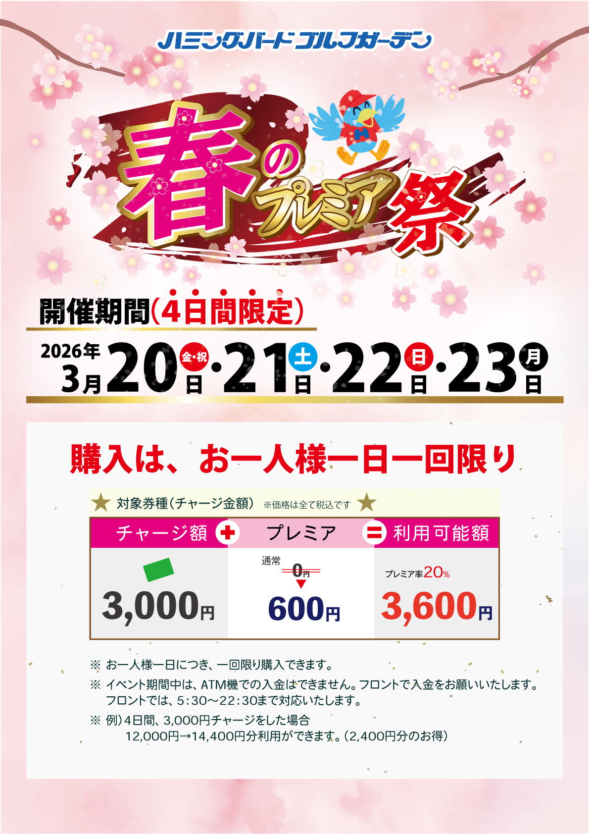 【2026年3/20~3/23】春のプレミア祭開催!!